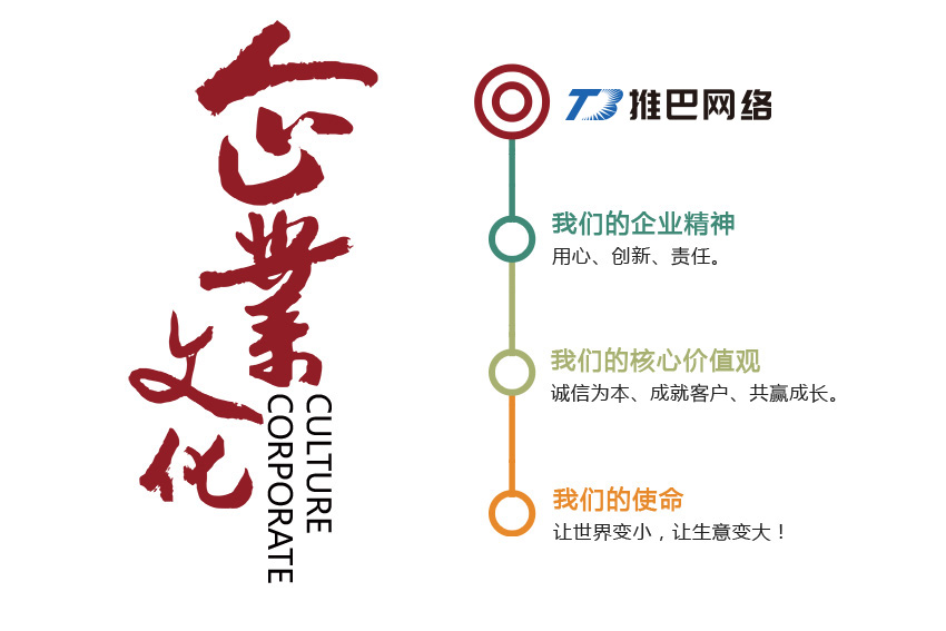 推巴網(wǎng)絡(luò )是致力于網(wǎng)站策劃,網(wǎng)站設計,網(wǎng)絡(luò )推廣的專(zhuān)業(yè)品牌策劃設計公司